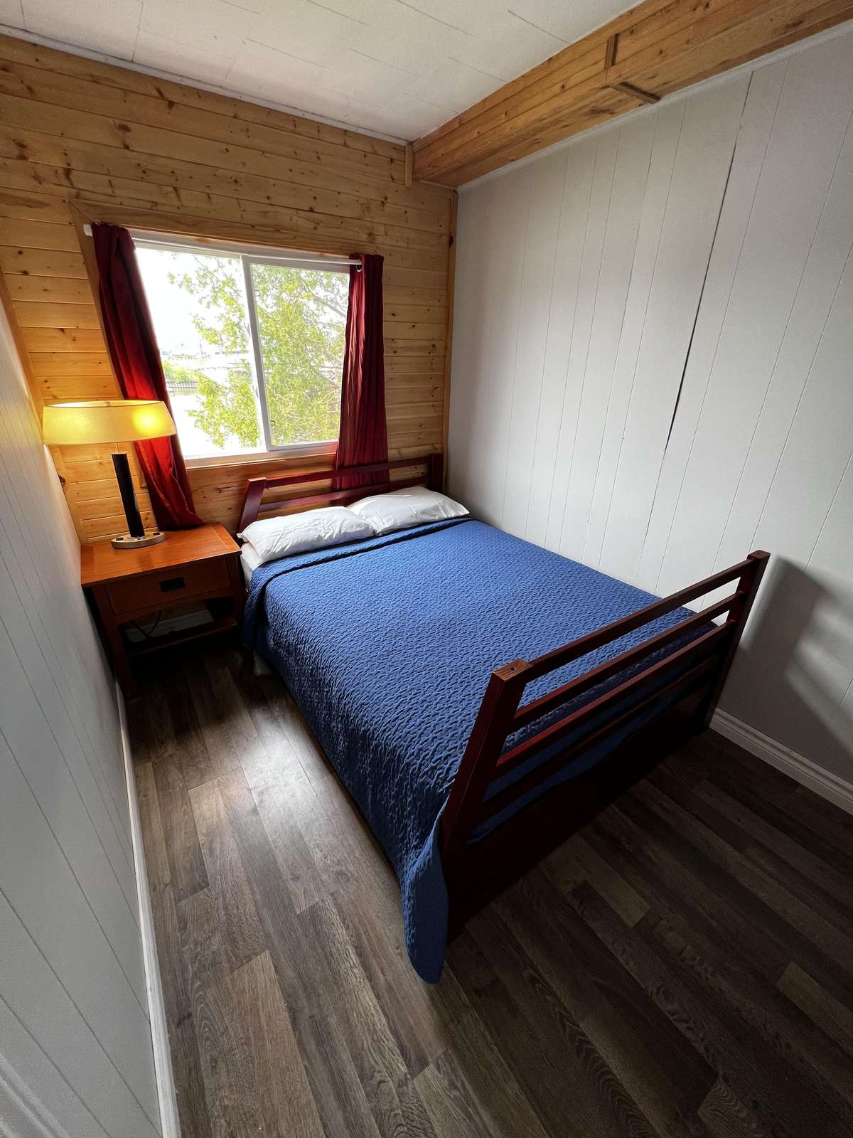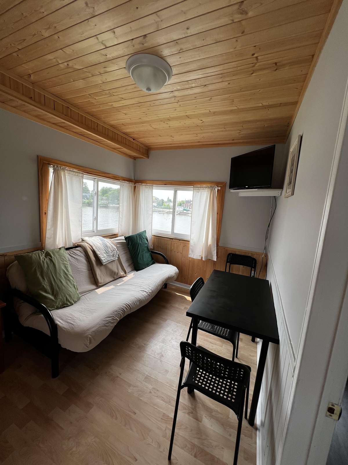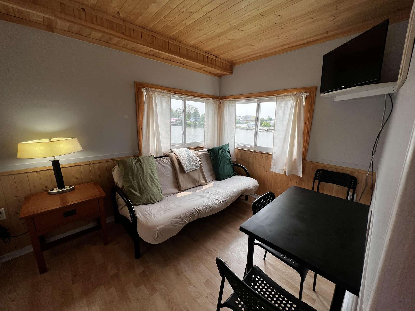 Simple upper level cottage sleeps up to 6 people. 2 bedrooms with a double bed. Double pull out futon in the living room.
