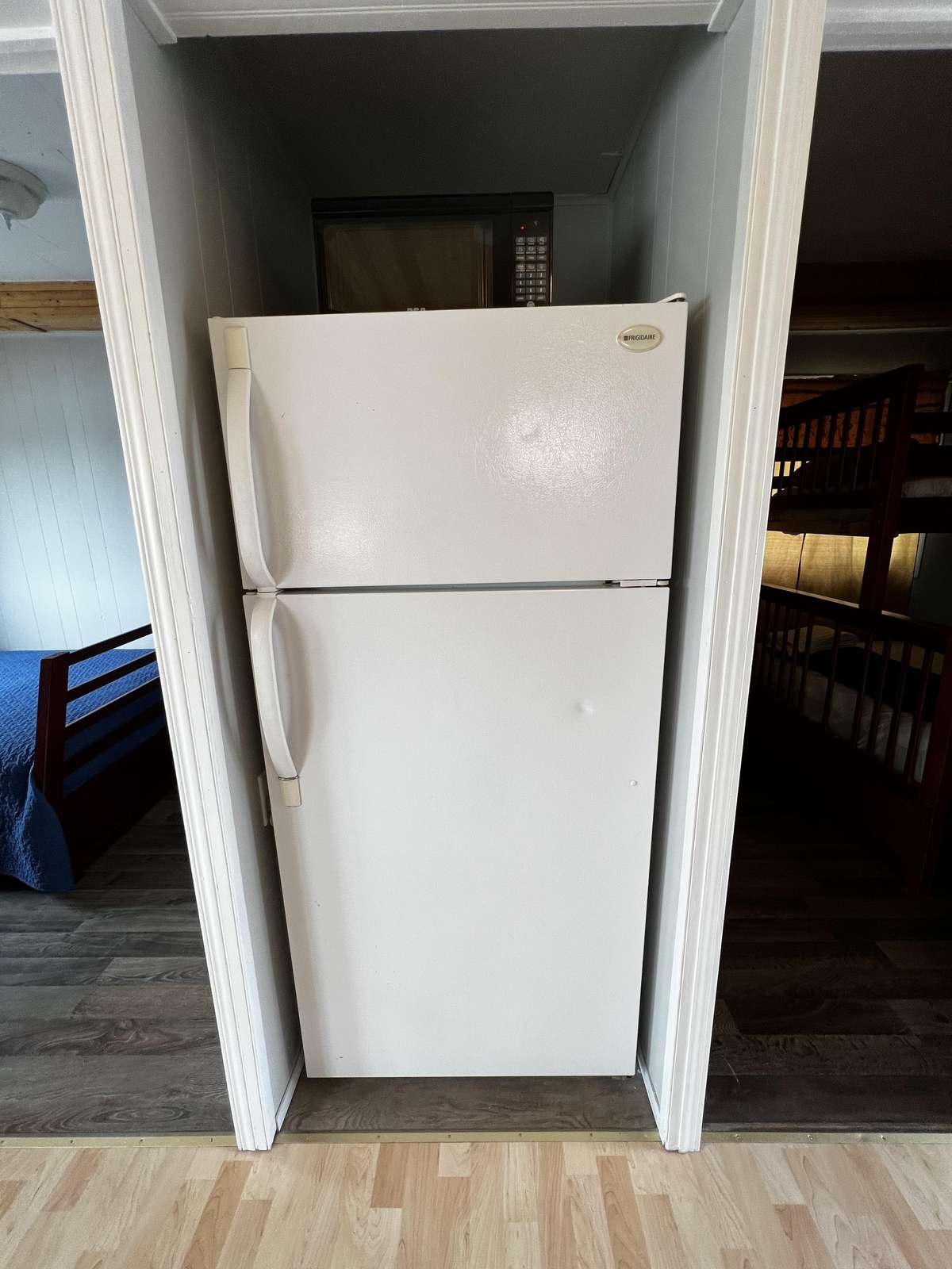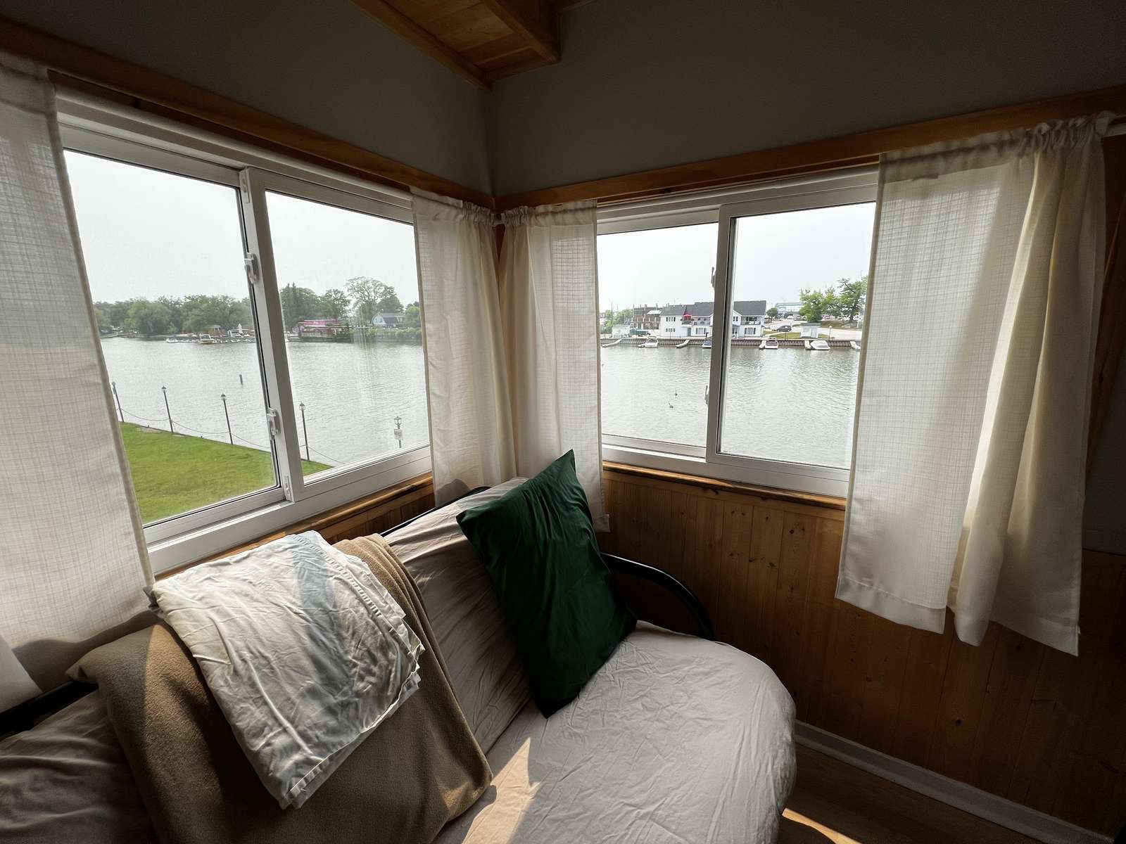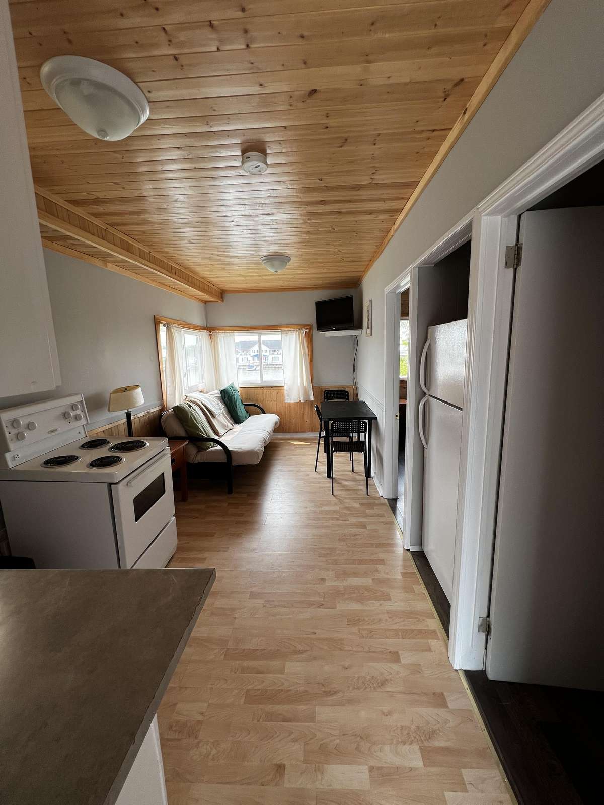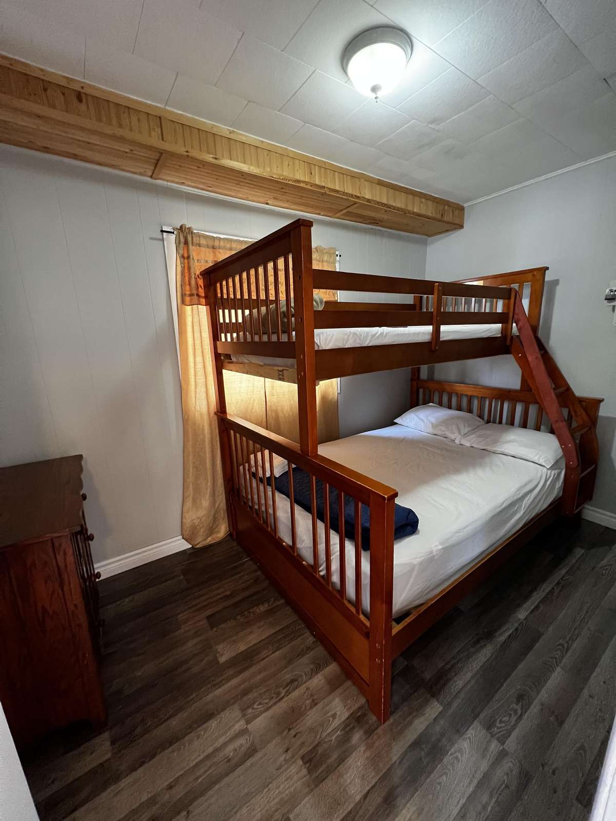 Simple upper level cottage sleeps up to 6 people. 2 bedrooms with a double bed. Double pull out futon in the living room.